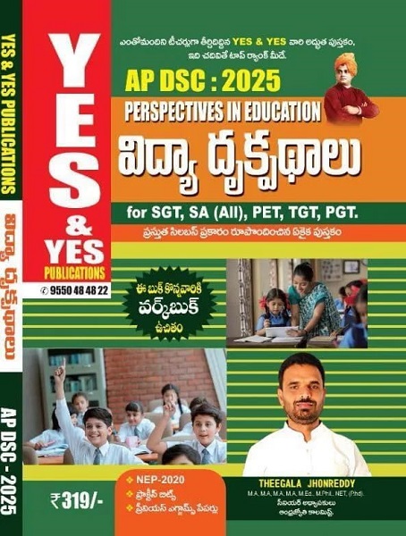 AP DSC Perspectives in Education 2025 (విద్యా దృక్పధాలు) published by Yes & Yes Publications is useful for AP DSC examinations